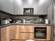 Назначили день приезда замерщика. Приехал вовремя. С менеджером уточнили все размеры по проекту, внесли правки. Выбрали в салоне кран, встраиваемую технику Крона: вытяжку, варочную панель и двухъярусный (!) духовой шкаф. Техника обошлась нам дешевле, чем такая же в интернете! Светлана применила максимум скидок и бонусов, и мы приступили к оформлению договора. Бумаг очень много: на каждый нестандартный шкафчик, отдельная бумажка. Но я считаю это плюсом — меньше вероятность недопонимания. Внесли предоплату — 30%. На утверждение в техническом отделе ушло две недели. Несколько раз звонила очень приятная женщина- технолог (к сожалению, не помню её имени), уточняла цвет элементов, согласовывала замены механизмов у нестандартных выдвижных ящиков в связи с техническими нюансами. После утверждения прислали СМС, чтобы мы оплатили в салоне оставшуюся часть. На изготовление ушло ещё две недели. С ремонтом помещения мы не успели. Поэтому воспользовались возможностью бесплатного хранения готовой кухни на складе фирмы ещё две недели. Из отдела логистики позвонили и спросили, когда удобно будет доставить нашу кухню. Назначили день и время. Привезли вовремя. Разгрузили, подняли на этаж, занесли, аккуратно поставили, сфотографировали два молодых крепких сотрудника. Попросили до приезда сборщиков ничего не трогать. В назначенный день, даже чуть раньше оговоренного времени, приехали два сборщика. Собирали и устанавливали кухню два дня (по проекту мебели много, задействовано три стены). Без сюрпризов, конечно, не обошлось. Несмотря на то, что мебель была оооочень хорошо упакована, у одного из настенных шкафов на задней стенке сборщики выявили большую трещину, и он был установлен в таком виде. Сборщики сами составили рекламацию, и через месяц нам привезли и установили новый шкафчик.