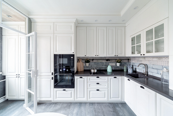 Подобрать мебель для любого помещения будет нетрудно благодаря многообразию оттенков белого. Конфигурация гарнитура может быть любой. В современных интерьерах уместны не только линейные (прямые), угловые, но и П-образные белые кухни. Таким образом, несложно подобрать модель гарнитура для помещения любой площади и планировки.