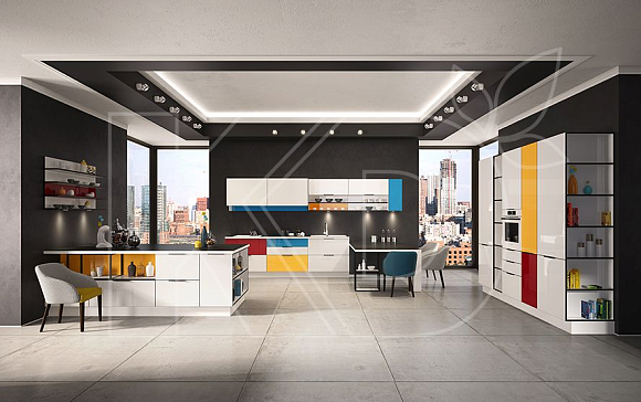 Что касается цветовой гаммы, это стилевое решение допускает использование любых – как сдержанных, так и ярких оттенков. Выбор подходящей расцветки следует делать, основываясь на особенностях помещения, где будет установлен гарнитур. В частности, для небольших площадей оптимальным вариантом станет мебель с белоснежными фасадами.