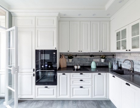 Подходящий кухонный гарнитур с белоснежными фасадами можно подобрать в любом стиле.