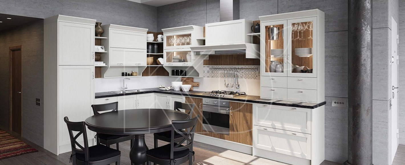 Классический гарнитур можно назвать универсальным. Он подходит не только для маленьких, но и для просторных помещений, подчеркивает царящую вокруг чистоту, настраивает на легкий позитивный лад. Этот цвет гармонично сочетается абсолютно со всеми другими оттенками, а значит, его можно смело комбинировать с ярким кухонным фартуком, выбирать обои, технику и напольное покрытие в любых тонах.