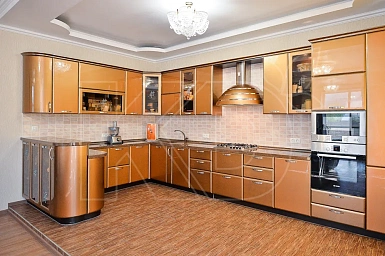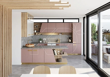 При выборе гарнитура обязательно учитывайте его планировку. Именно от этого зависит, насколько гармонично мебель впишется в пространство. В небольших и средних комнатах обычно устанавливают угловые и линейные комплекты. При этом высокие модули размещают у стен, которые находятся далеко от окна. Такая расстановка обеспечивает комфортный доступ к содержимому шкафов. Ближе к окну следует установить мойку, плиту, столешницу, потому что готовить удобнее при хорошем дневном освещении.