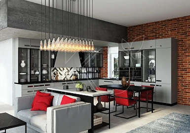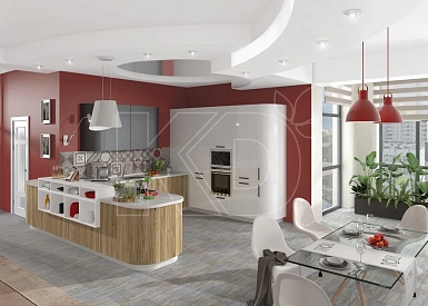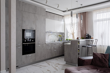 В больших помещениях устанавливают П-образные комплекты. Это отличный вариант для готовки всей семьей или дружеской компанией. Также для просторных комнат подходят модели с барными стойками: классическими, двухуровневыми, совмещенными.