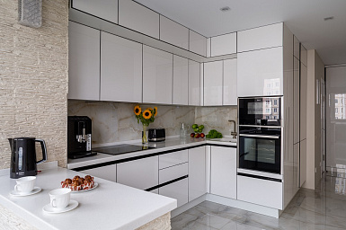 Современная кухня должна быть стильной и аккуратной. Разнообразные банки со специями, всевозможные аксессуары, прихватки и другие мелочи не должны захламлять пространство, но при этом всегда быть под рукой. Добиться идеального порядка позволяет кухонный гарнитур со скрытыми системами хранения – выдвижными элементами, многоуровневыми полками.