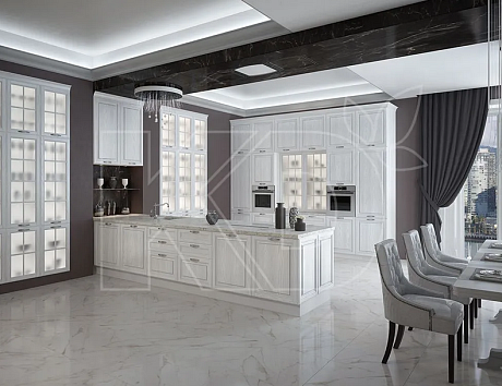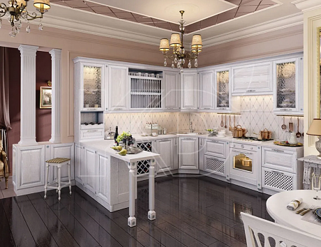 Белые классические кухни в ассортименте фабрики «Кухонный двор»
