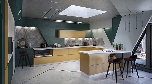 Тем, кто предпочитает элитные модели в стиле модерн или лофт, понравятся оригинальные гарнитуры, изготовленные из МДФ в сочетании с экомембраной, экоплитами или экомассивом. Эти современные материалы обладают высокими эксплуатационными характеристиками: они прочны и долговечны, устойчивы к ультрафиолету, влаге и температурным перепадам. Кроме того, подобным фасадам можно придавать любой внешний вид. Например, в немецкой коллекции фабрики «Кухонный двор» представлены кухни с фасадами, стилизованными под бетон, мрамор, камень, натуральную кожу. Выполненная в современном стиле мебель выглядит подчеркнуто лаконично. Для нее не характерно обилие декора – напротив, многие модели лишены даже ручек на фасадах. Вместо них используются инновационная система открывания Space Line и электропривод Servo-drive.