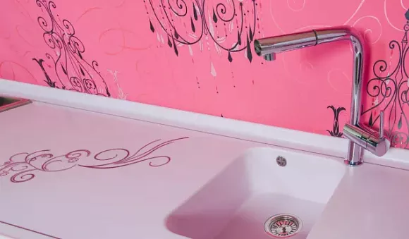 • Практичность. Поверхности подобных гарнитуров легко очищаются от загрязнений с помощью губки и обычного моющего средства.