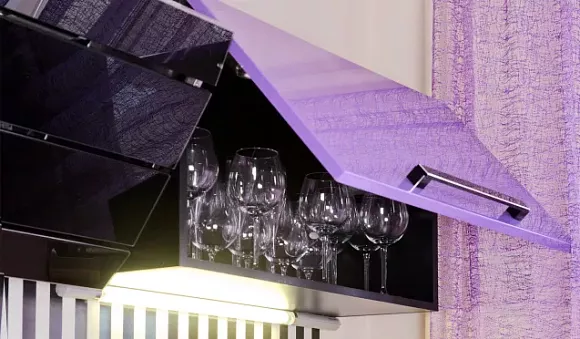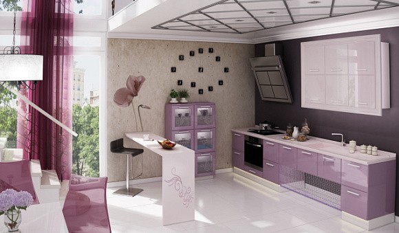 В каталоге кухонь на сайте бренда вы сможете купить кухонный гарнитур нужной планировки. Также мы выполняем кухни в фиолетовых цветах на заказ. В этом случае производятся индивидуальные замеры, учитываются архитектурные особенности помещения, пожелания клиента относительно наполнения и декора.