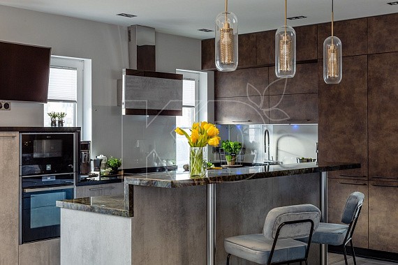 Сделать кухонное пространство визуально более привлекательным можно с помощью сочетания разнообразных металлических элементов. Дизайнеры предлагают комбинировать нержавеющую сталь, латунь, бронзу, белые металлы с ручной полировкой и брашированием.