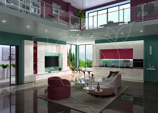 • Эстетичностью. Модель с блестящими фасадами сделает интерьер привлекательным и современным. Подобные комплекты выполняют в разных стилях – хай-тек, модерн, арт-деко, лофт, минимализм.