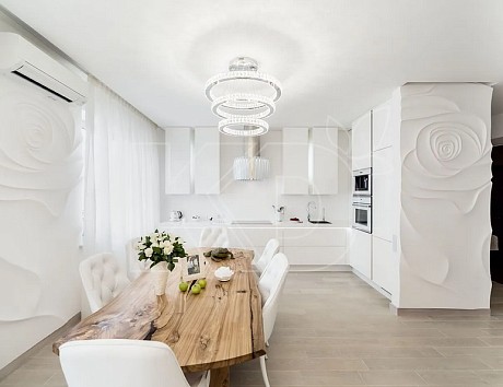 Добавив в интерьер немного произведений искусства и комнатных растений, можно очень просто превратить серую кухню в обычной хрущевке в современное и изысканное место для отдыха с друзьями и приема пищи.