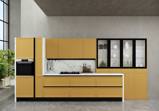 Для более демократичных направлений подойдут версии нестандартных расцветок. Например, желтые кухни будут уместны в комнате, оформленной в скандинавском стиле. Подобная цветовая гамма смотрится очень эффектно и подчеркивает лаконичность и простоту мебели в духе сканди.