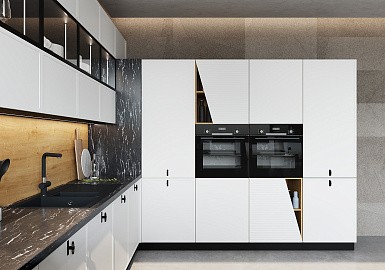 Готовые решения – не самый удачный вариант, особенно для нестандартных помещений. Гораздо практичнее заказать кухню от производителя. В этом случае планировка и дизайн будут разрабатываться с учетом архитектурных особенностей пространства и пожеланий клиента.