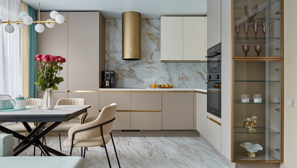 Кухня как «тихий ассистент»: матовый кашемир и золотой пунктир