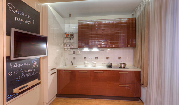 Увидеть образцы гарнитуров вы сможете в каталоге кухонь салона. Здесь же представлены отзывы наших заказчиков. Помимо реализации готовых решений, наши сотрудники занимаются изготовлением кухонь на заказ по индивидуальным замерам. В этом случае коричневая кухня будет выполнена с учетом архитектурных особенностей помещения, в котором она будет размещаться.