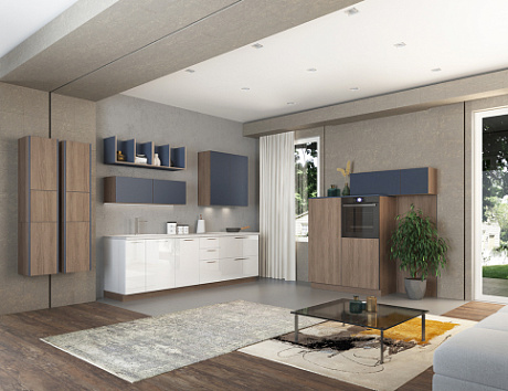 Синие кухни ярко выделяют на общем фоне небесный оттенок, который может быть более бледным и насыщенным в зависимости от выбора изделий. Чтобы достичь нужного эффекта, лучше проконсультироваться с дизайнером.