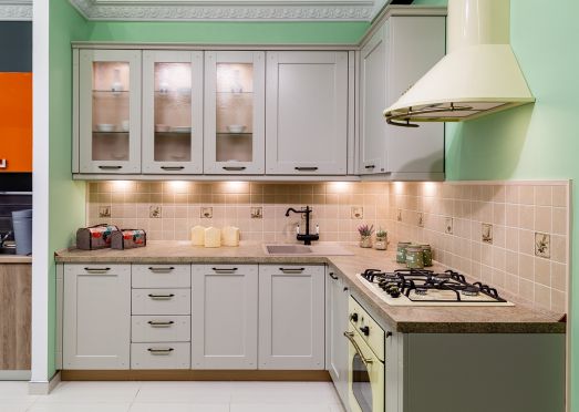 Кухонные гарнитуры в стиле кантри пользуются у потребителей большой популярностью. Для этого направления характерна простота, использование небольшого количества декоративной отделки. Как правило, это деревянные решетки, растительные узоры, стеклянные вставки.