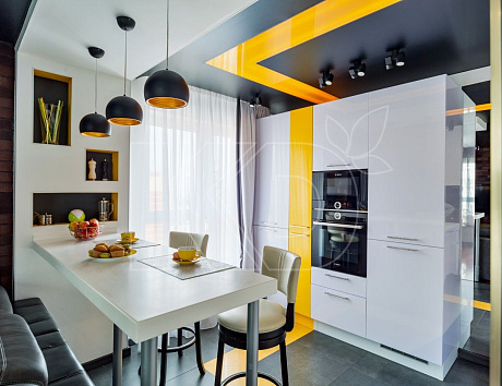 Отлично справляются с этими функциями кухни для студии с барной стойкой. Подобные конструкции отличаются разнообразием расцветок, декоративной отделкой.