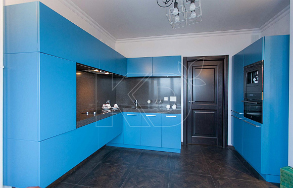 • Если цвет бледно-голубой, то голубая кухня потребует дополнения в виде пастельных и бежевых акцентов.