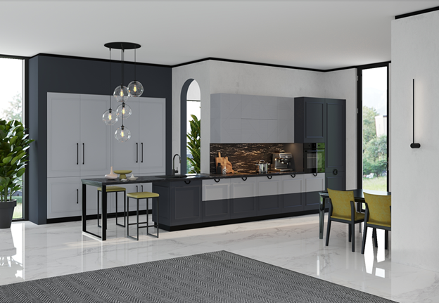 Сочетая в себе сразу стили модерн и классику, такая нестандартная кухня отлично может вписаться почти в любое помещение.