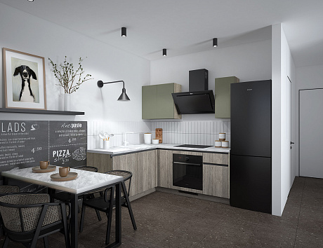 Компактная и функциональная, кухня Уна идеально подойдёт тем, перед кем стоит задача разместить максимум функциональных фон в небольшой пространстве. Выразительное двухцветное сочетание фасадов создаёт уют и визуальный баланс. Модель легко адаптируется к разным стилям — от скандинавского до современного. Фасады выполнены из прочной экоплиты EGGER — надёжного материала, устойчивого к влаге и механическим повреждениям.