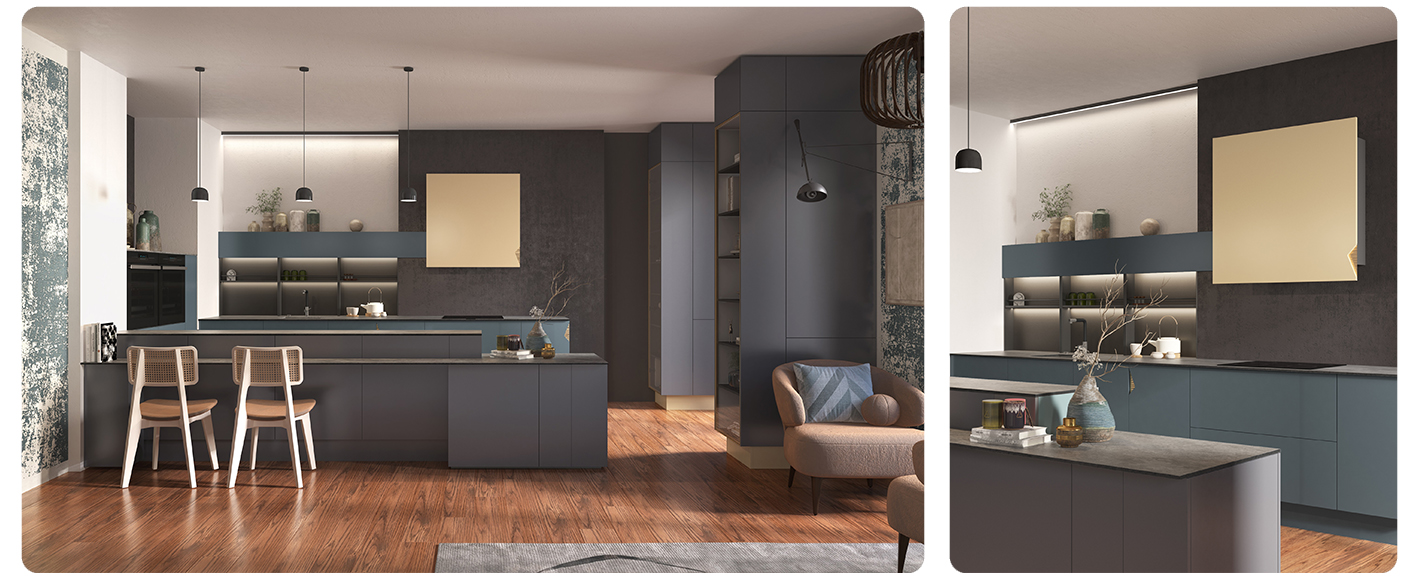 Даже если существует потребность в большом количестве зон хранения, нужно соблюдать принцип умеренности, чтобы не заставить пространство. Оставьте свободным проход между нижними модулями не менее 90 см. Используйте вертикальные решения, угловые модули, выдвижные корзины, волшебные уголки и системы хранения в цоколе пеналов. Чересчур перегруженное пространство часто мешает уборке и утяжеляет интерьер. Минимализм и функциональность — вот два главных принципа современной кухни.