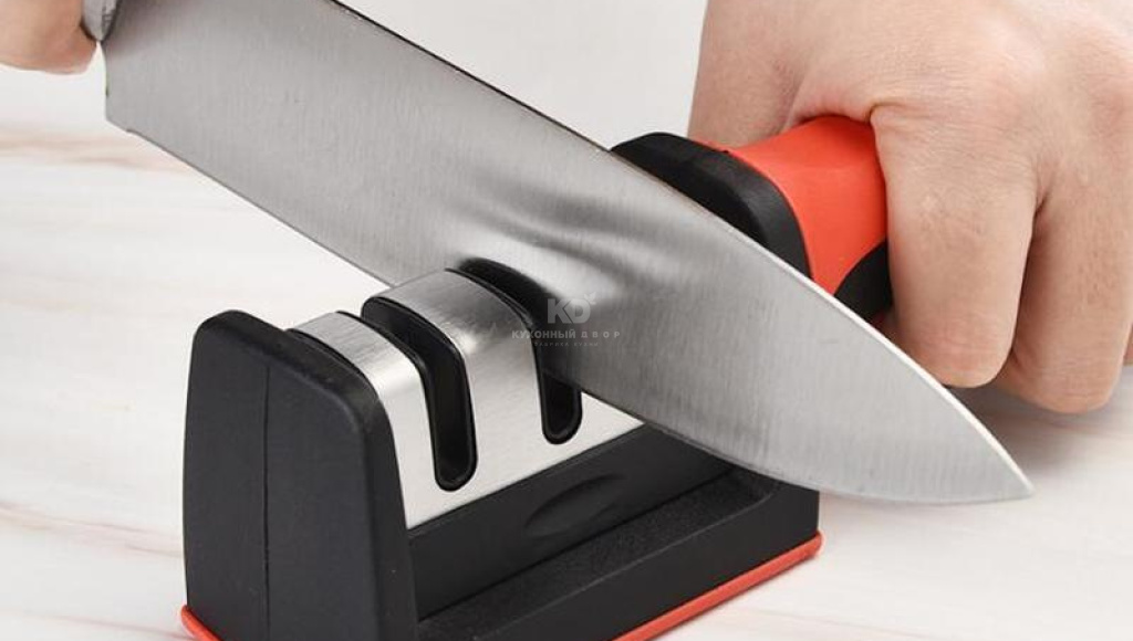 Заточка позволяет значительно продлить срок службы ножей, сохранив их остроту. Благодаря этому гаджету хозяйка может избежать ручной заточки ножа, во время которой лезвие часто повреждается.