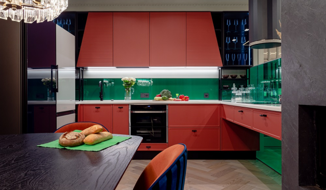 Красные кухни. Красный цвет ассоциируется с энергией, силой, могуществом. Когда дело доходит до дизайна с красным цветом, оттенок действительно имеет значение. Чем ярче красный, тем больше он воздействует на человека и повышает частоту сердечных сокращений. Чем глубже и тусклее оттенок, тем больше он вызывает страсти и силы. Однако любой красный оттенок усиливает метаболизм человека.