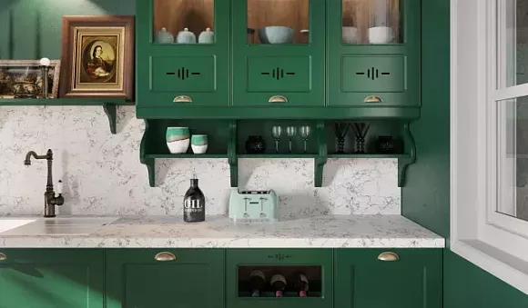 Но есть исключение. Темные цвета, такие как красные, розовые, бордовые и зеленые, могут перетянуть весь акцент на себя. Впрочем, если вы хотите, чтобы всё в вашей кухне было особенным, то используйте интересные решения.
