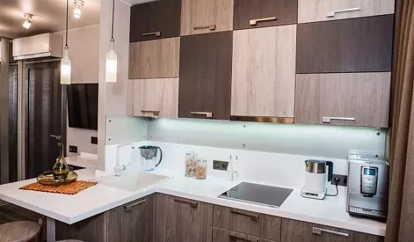 Угловая кухня прекрасно экономит место. Она идеально подходит именно для маленькой площади, но удачно вписывается и в интерьер просторного помещения.