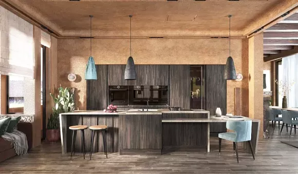Сочетание цветов темной кухни