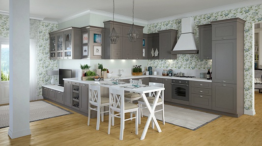Хотите дополнительно усилить неординарный внешний вид такого гарнитура? Используйте декор в виде золотой или серебристой патины на фасадах – она как нельзя лучше подчеркнет утонченность классической мебели.