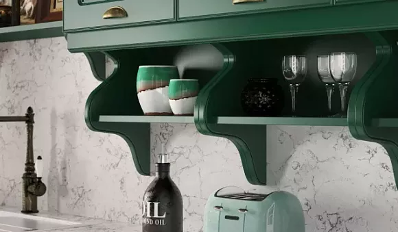 Особенности производства зеленых кухонных гарнитуров