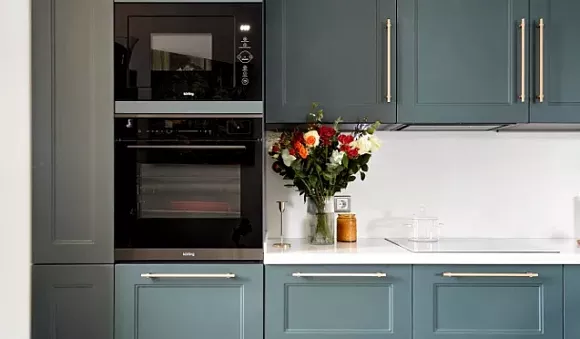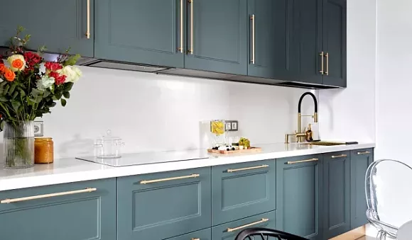 Чтобы кухонный гарнитур зеленого цвета идеально вписался в интерьер, учитывайте его планировку и размеры помещения. Например, прямая кухня подойдет для небольшого пространства, так как не займет много места.